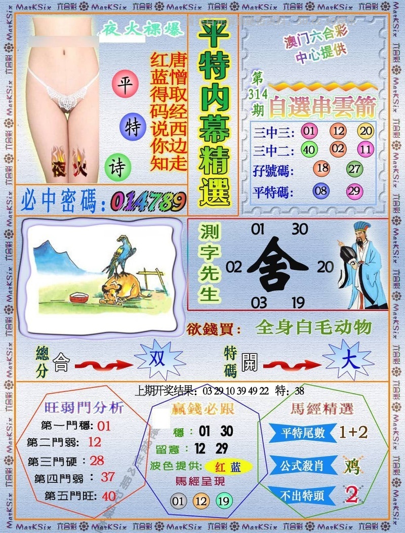 | 314期:七肖中特【鼠羊龙马鸡猪虎】开:羊23准 |